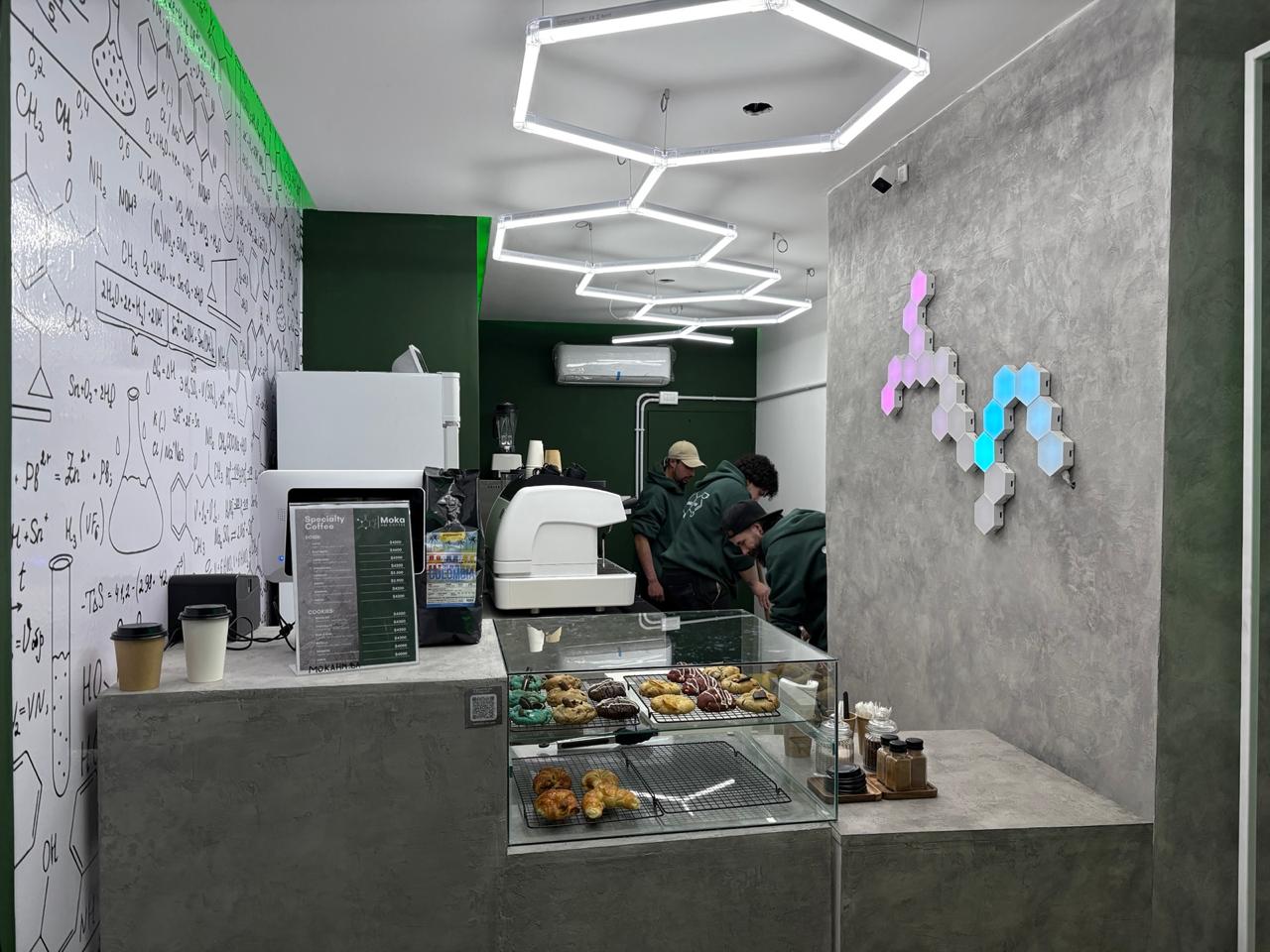 Una cafeteria de especialidad donde el diseño "reacciona" con cada detalle. En 15 m², se creó este espacio que combina el café con la química. La atención, el despacho y hasta un pequeño sector para sentarse. Diseño compacto, identidad clara y funcionalidad.